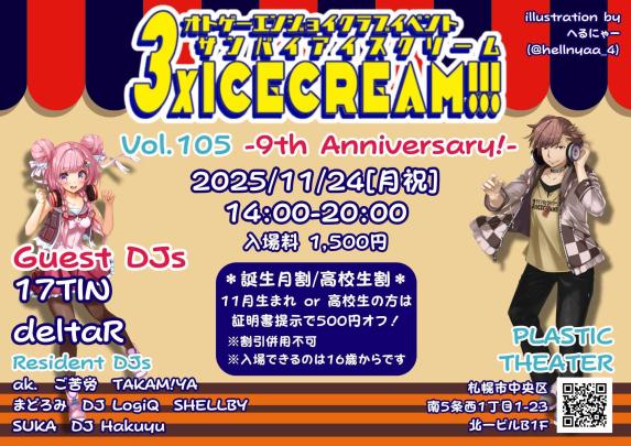 2025.11.24(mon) 3xICECREAM!!! 9th Anniversary (vol.105)