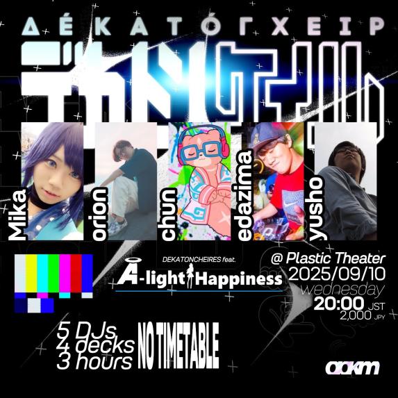 毎回5人のDJを集めタイムテーブルは組まず3時間の中で一瞬ずつイベントを作り上げていく